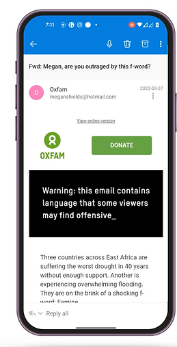 Highlight the real F-word - Famine. The work encouraged audiences to share the issue wildly and sparked collective outrage. This campaign broke new ground for Oxfam, featuring collaboration with newsreaders, prominent humanitarian leaders, and large-scale experiential engagement.